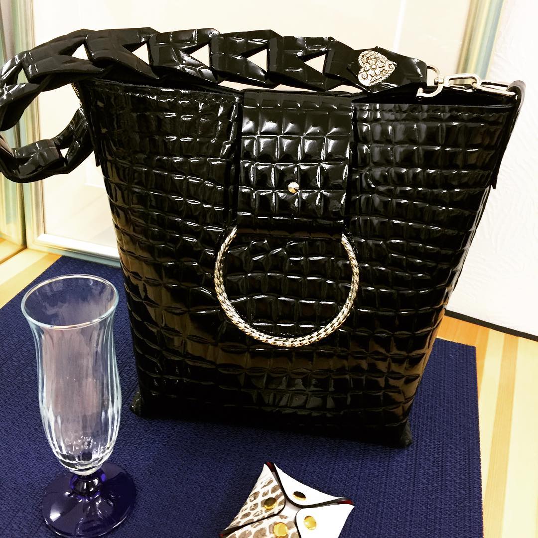 金のガチョウ革細工教室〜♪(╹◡╹)牛革クロコ型押しエナメル仕上げトートバッグ 仕上がりました。如何でしょうか〜♪(╹◡╹)♡