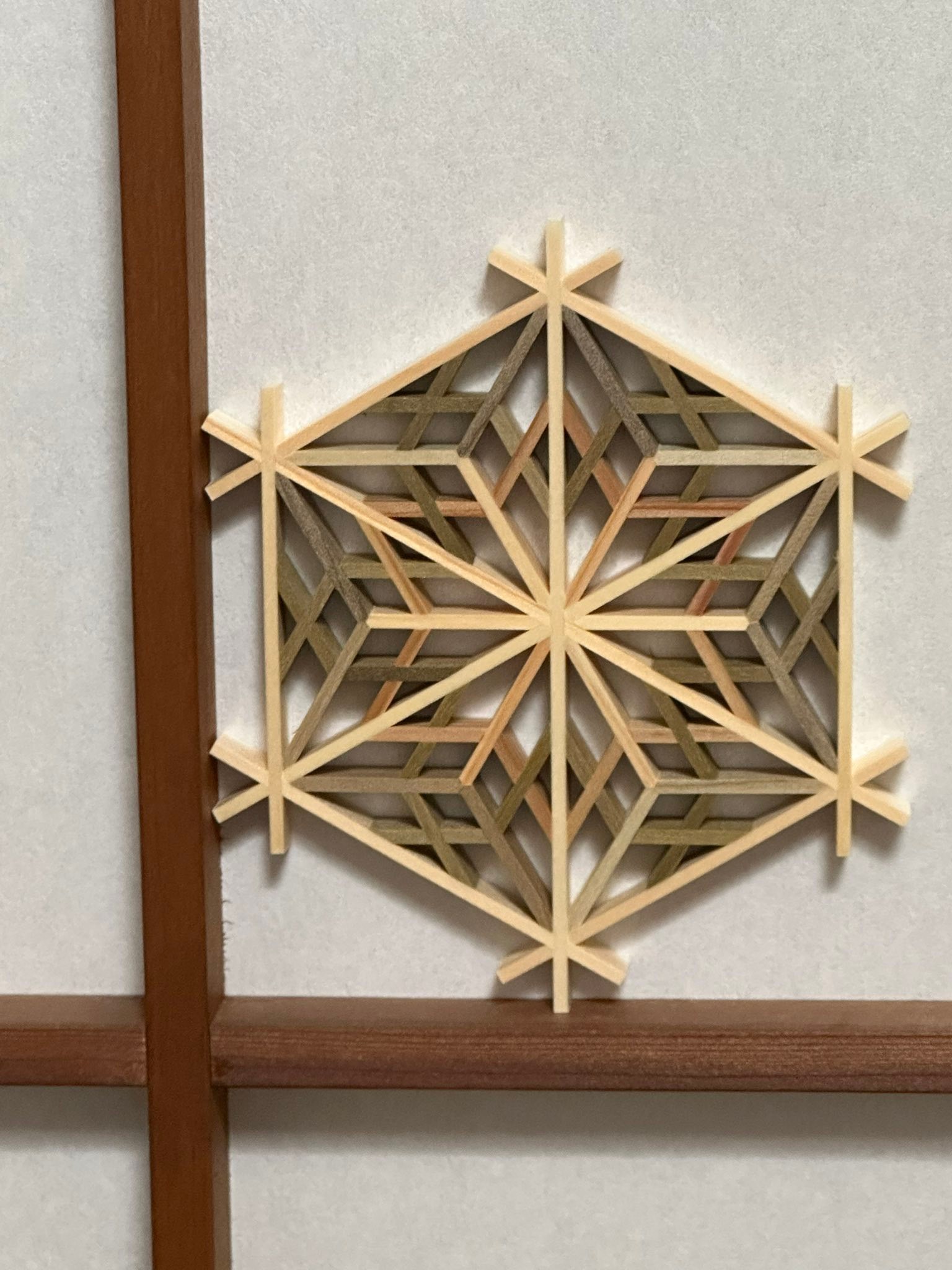 2026/04/14 大川組子 麻の葉模様 **福岡・大川の伝統技術「組子細工」**です。釘を使わず、細い木を組み合わせて文様を生み出す それは職人の「精度」と「祈り」が重なった、日本独自の美しい伝統の技術大川組子の本質福岡県大川は、日本有数の家具産地その中で育まれてきた組子 • 0.1ミリ単位の精度 • 木の呼吸を読む感覚 • 手仕事の積み重ね見惚れてしまいました。 #大川組子 #コースター
